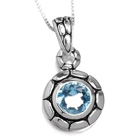 Click here to buy this : Sterling Silver Cobblestone w/ Aqua Glass Pendant